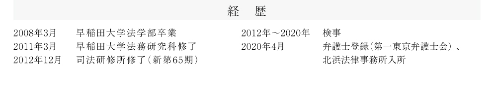 入所以来、元検察官としての経験も活かし、不正調査・危機対応、紛争解決、損害保険、コンプライアンスに関する案件を中心に取り扱って参りました。クライアントの皆様の想いに寄り添い、粘り強く最善の解決策を模索し、ご提案するということを大切に、日々業務にあたっております。引き続き、より一層のご指導ご鞭撻を賜りますよう、よろしくお願い申し上げます。